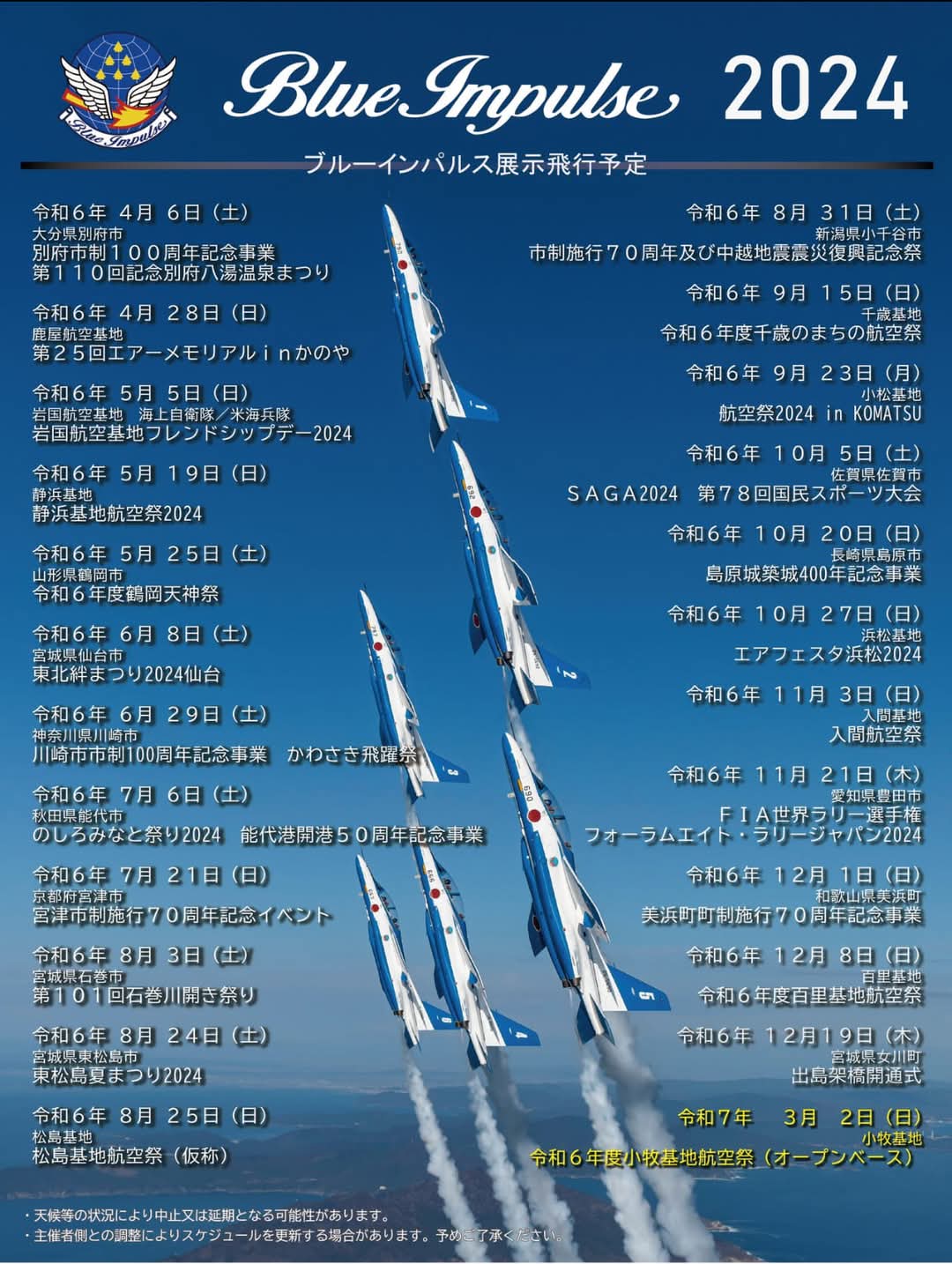 2025年3月2日(日)に開催される小牧基地航空祭(オープンベース)にブルーインパルスの参加が決定!