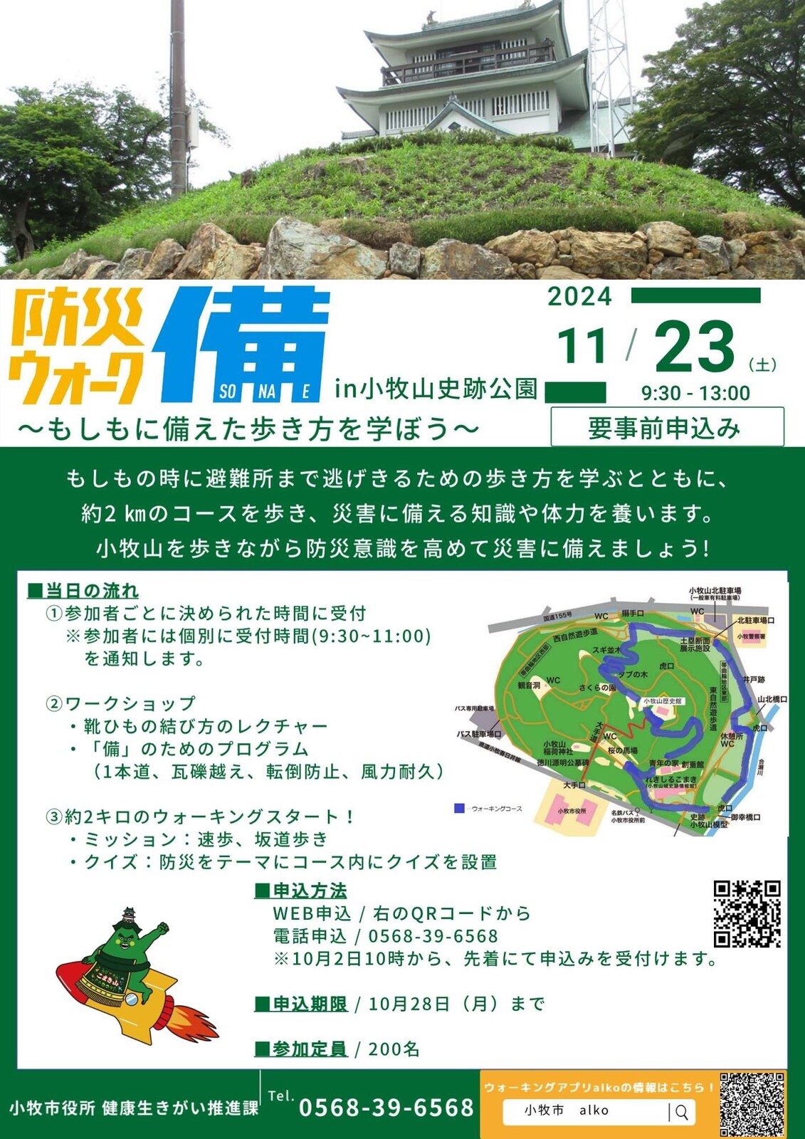 11/23(土)に『防災ウォーク備 in小牧山史跡公園』が開催されます。