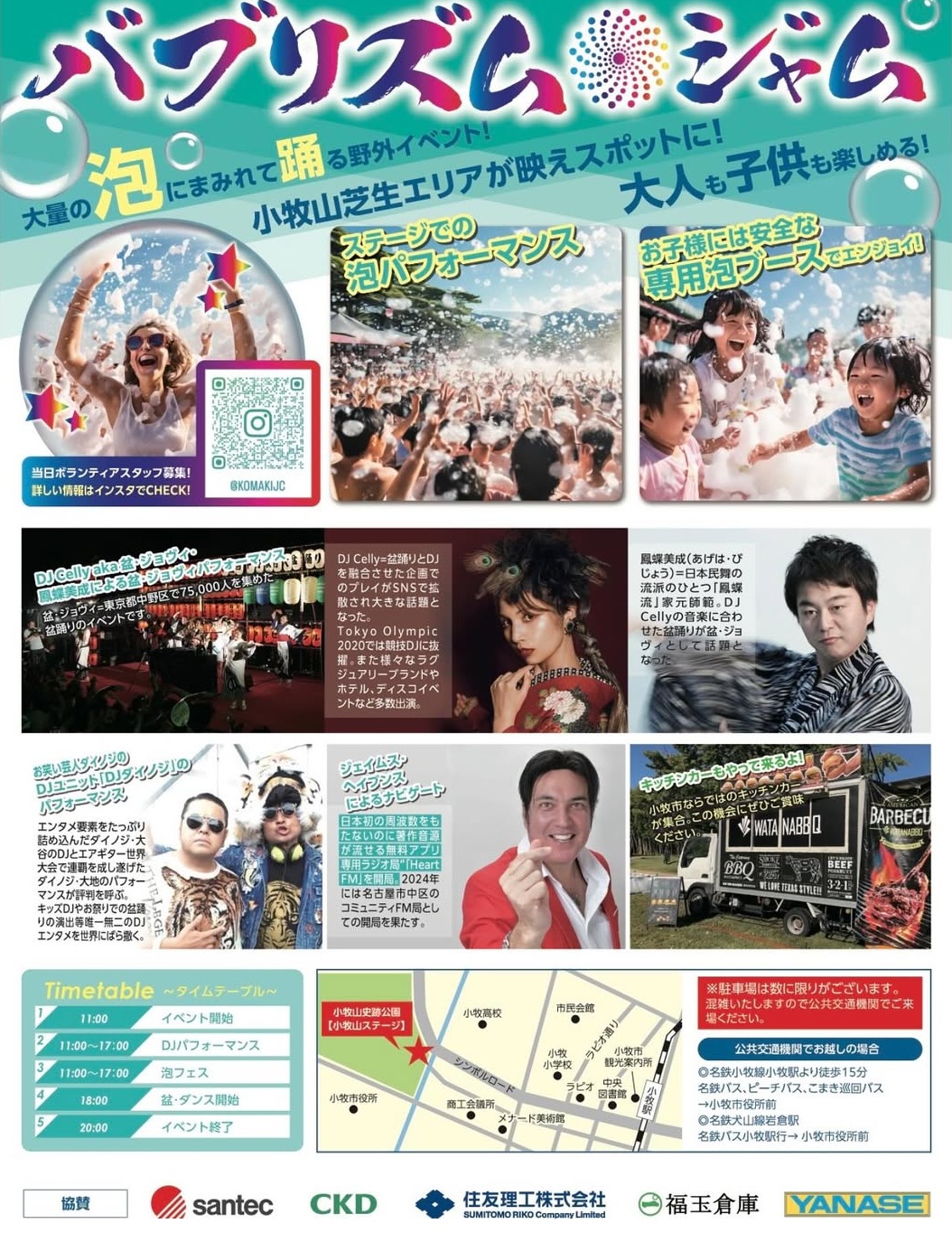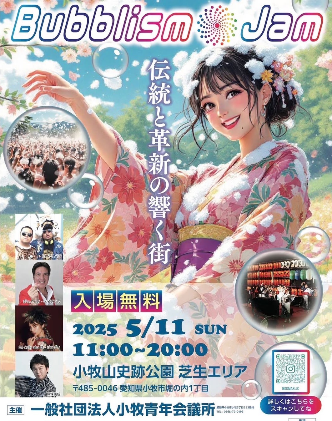 “泡と音楽の無料イベント”である『Bubblism Jam(バブリズム ジャム)』が5/11(日)の11:00~23:00の時間帯で開催されます。場所は小牧山史跡公園の芝生広場(小牧山東側麓)。