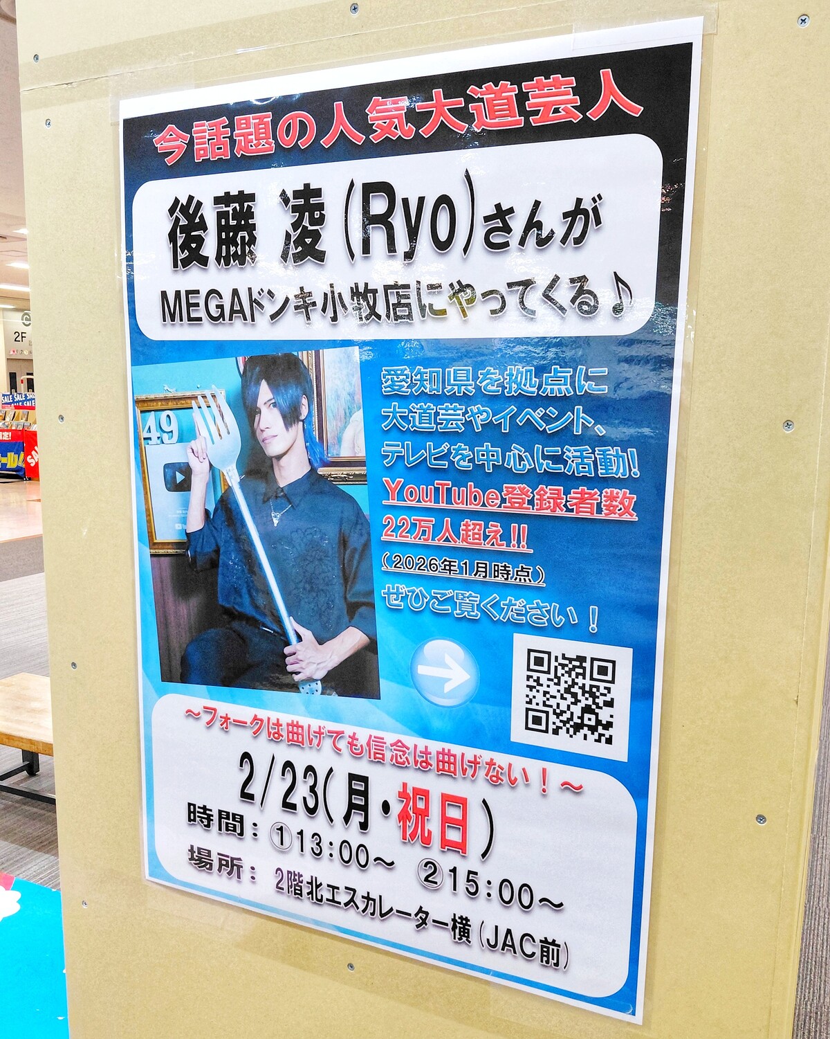 2/23(月・祝)にMEGAドン・キホーテUNY小牧店で人気大道芸人・後藤凌(Ryo)さんの公演が行われます。