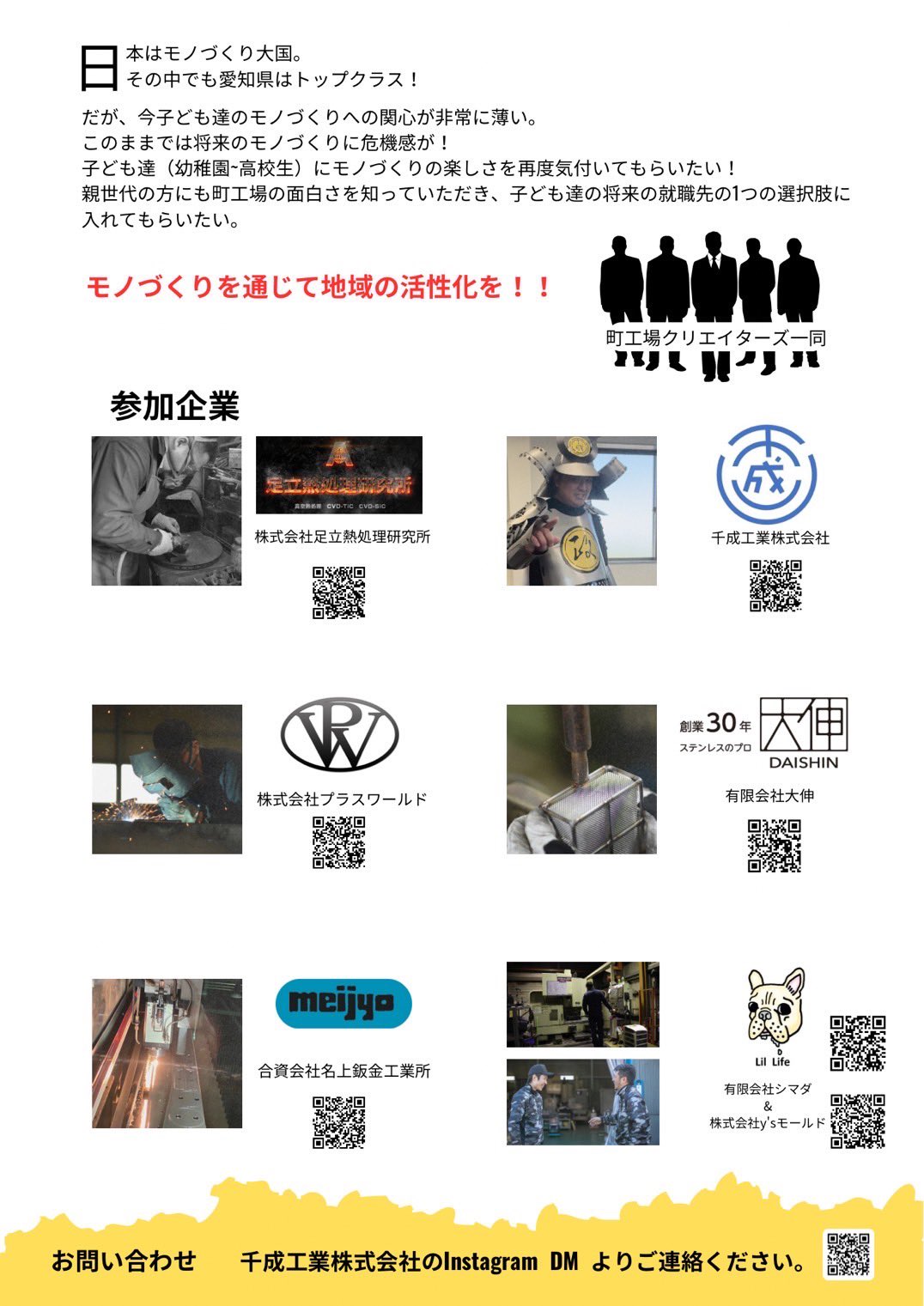 ※開催の有無は千成工業Instagram(@sennari.aichi)にてお知らせあり
