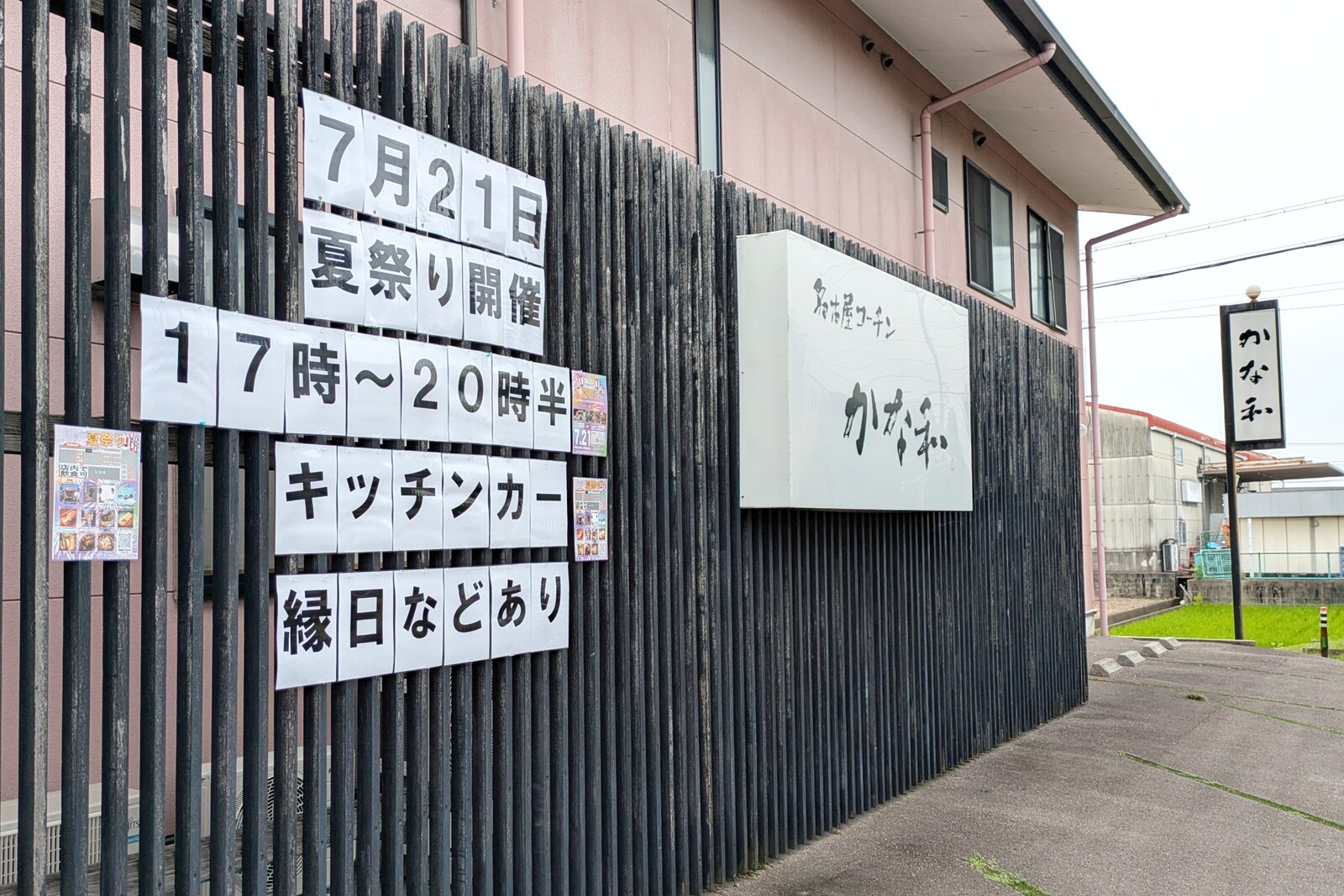 7/21(月・祝)に小牧市東田中の名古屋コーチンかな和駐車場にて『夏祭り』が開催されます。時間帯は17:00~20:30。
