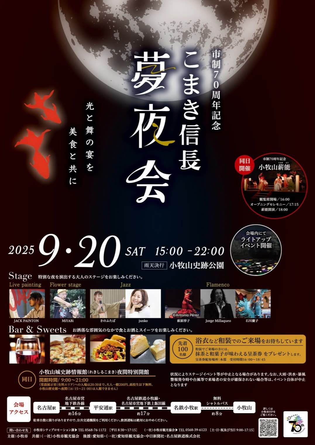 『こまき信長夢夜会2025』が9/20(土)15:00~22:00で開催されます。会場は小牧山史跡公園。