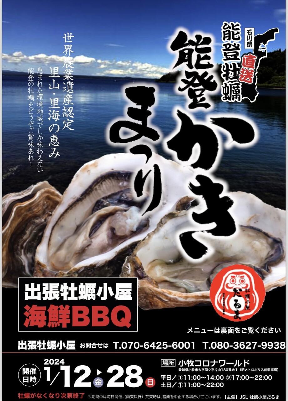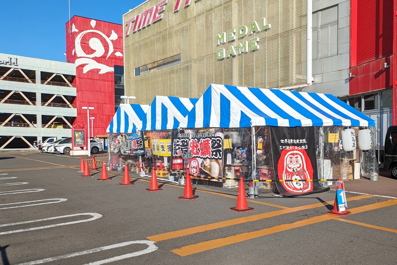 小牧コロナワールドの駐車場で『能登牡蠣祭』が開催中。