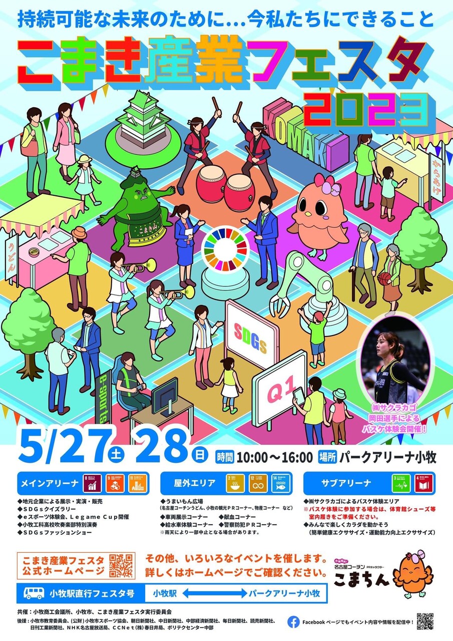 こまき産業フェスタが5/27(土)5/28(日)10:00~16:00で開催されます。会場はパークアリーナ小牧。
