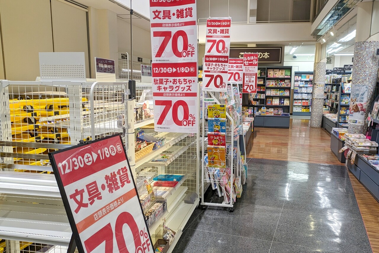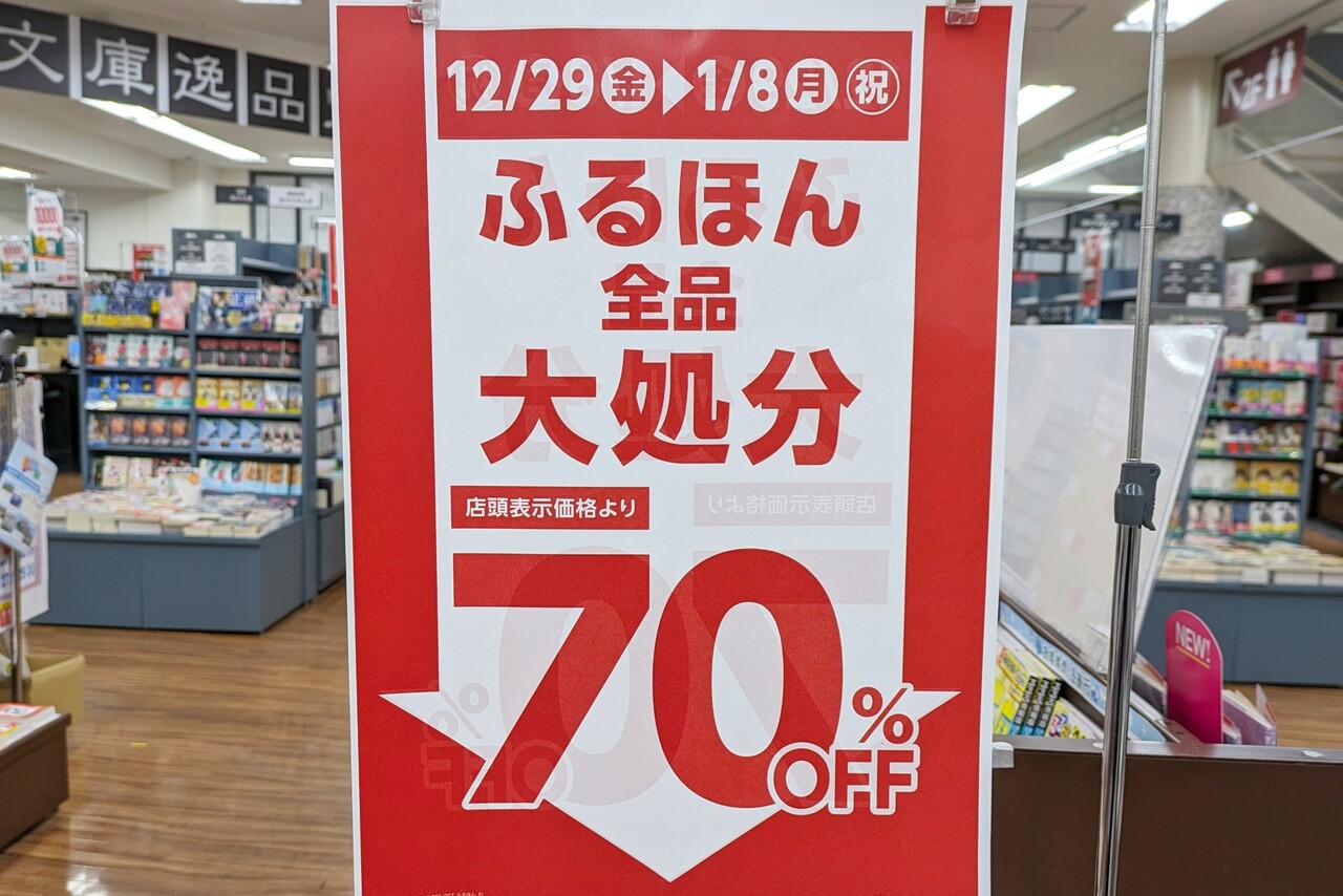 古本も閉店日である1/8(月・祝)まで70%OFFになっています。