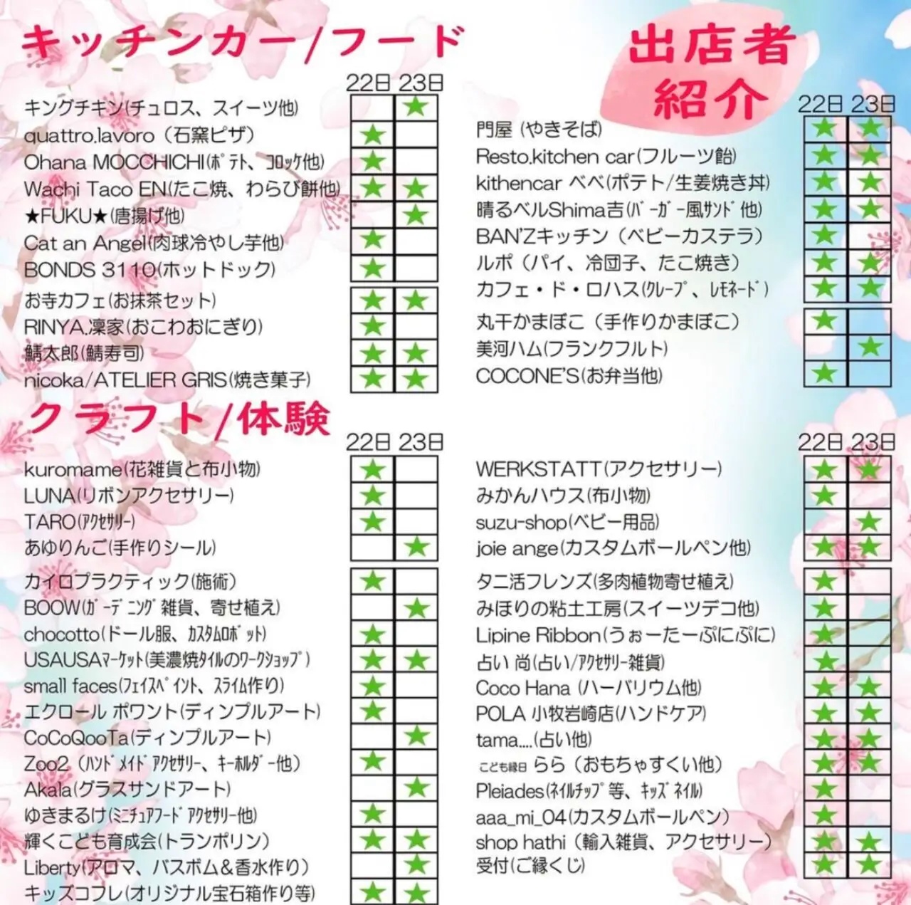 ↓出店一覧と当日の配置図