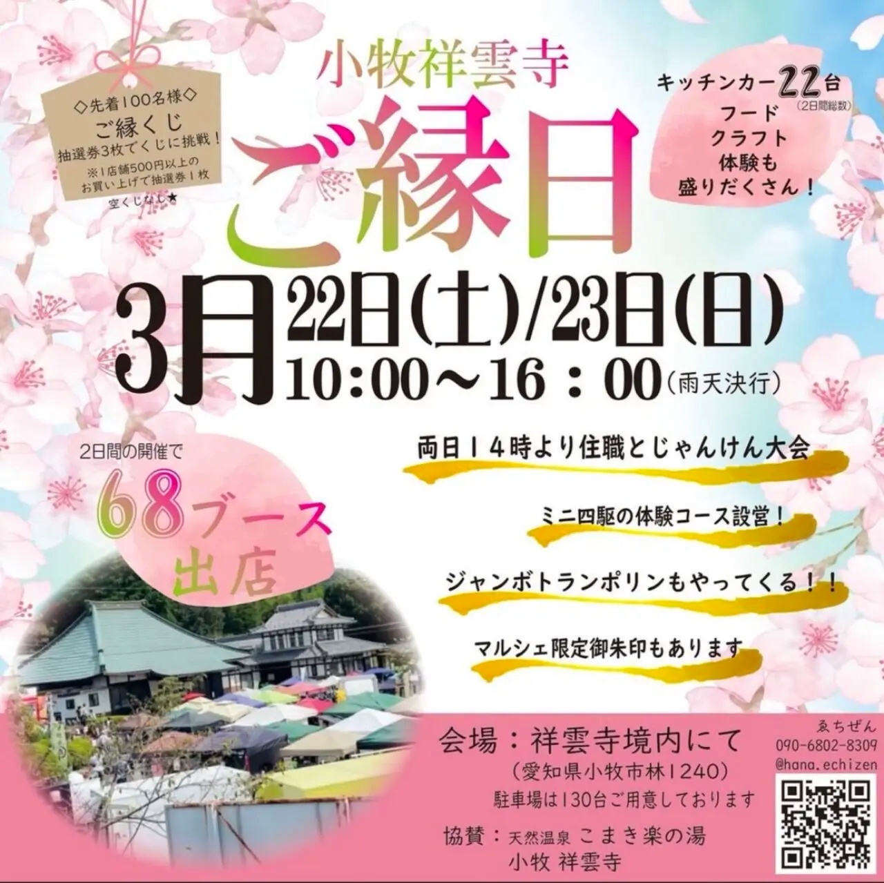 小牧市林の祥雲寺で3/22(土)23(日)に『祥雲寺縁日』が開催されます。開催時間は10:00~16:00。