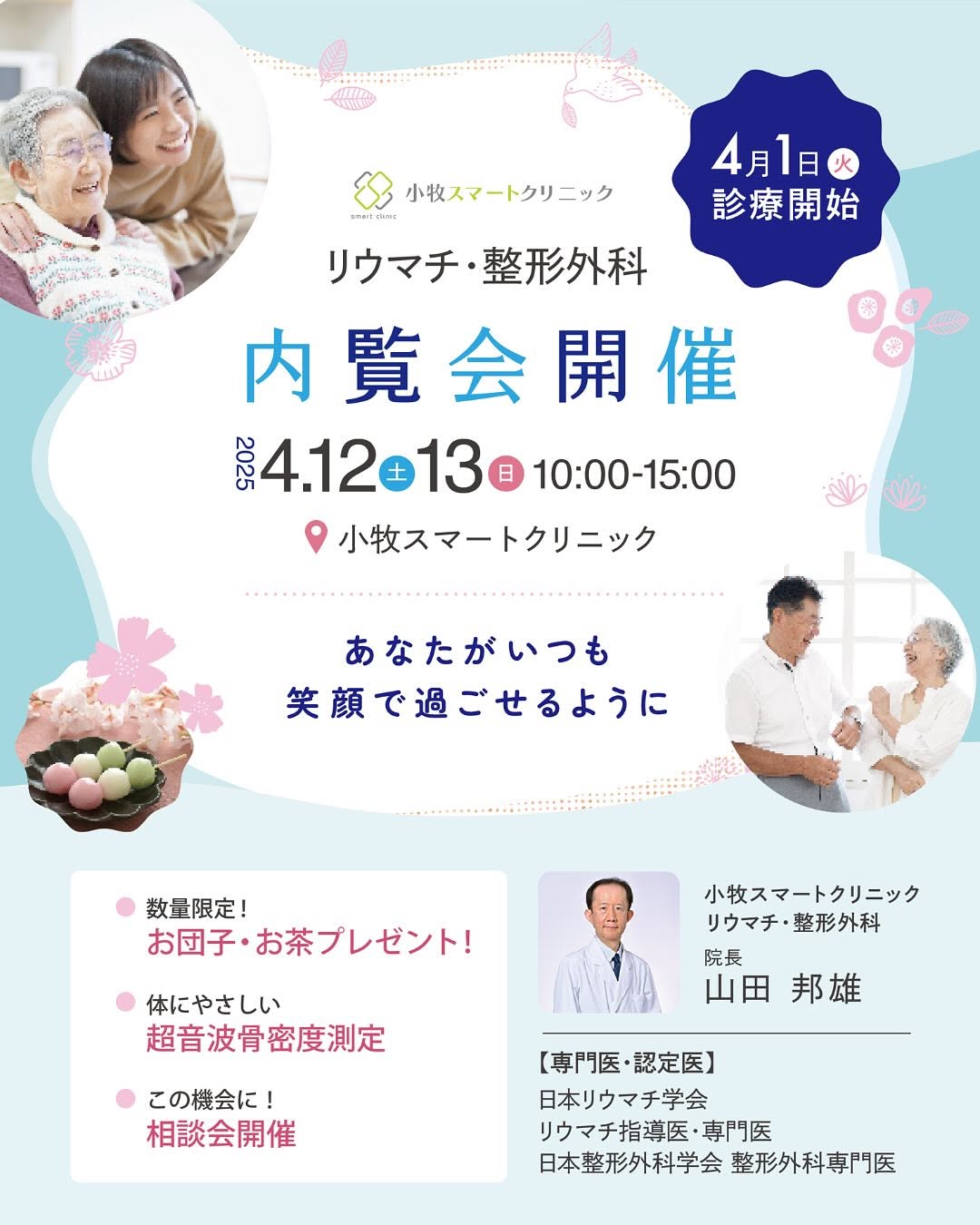 4/12(土)4/13(日)の10:00~15:00でリウマチ科・整形外科の内覧会が開催されます。