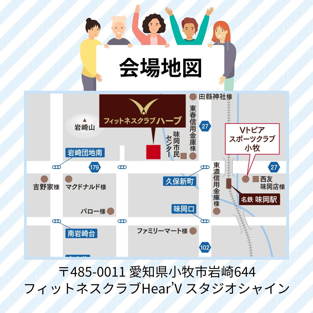 会場:愛知県小牧市岩崎644 フィットネスクラブハーブ2階スタジオシャイン