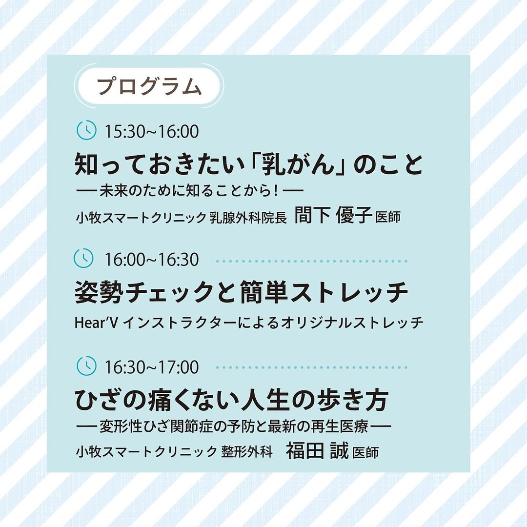 乳がんや膝について知りたい方や気になる方は、ぜひ参加してみては!