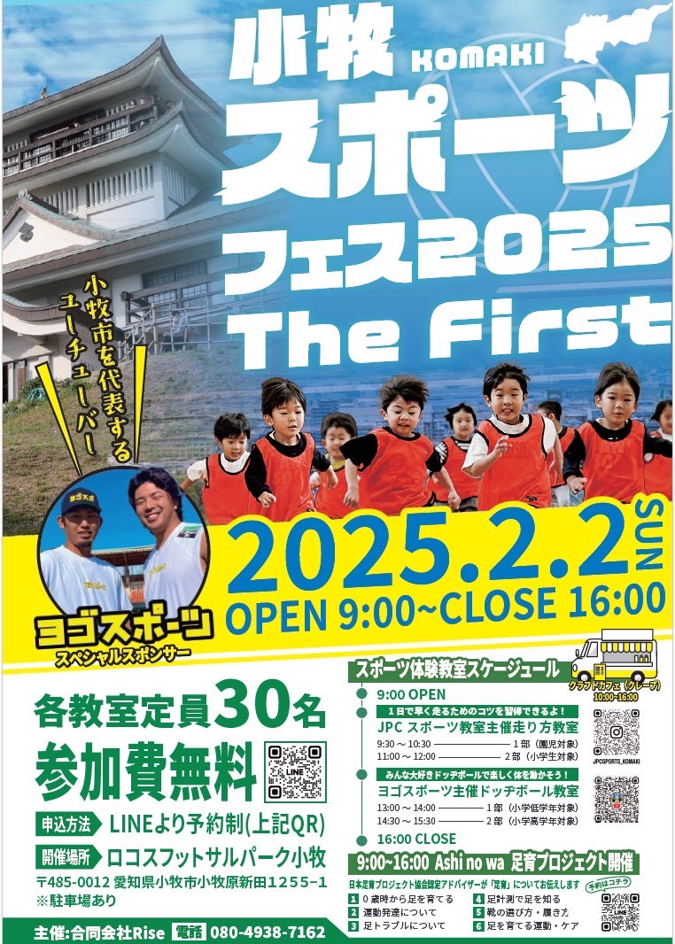 2/2(日)の9:00~16:00で『小牧スポーツフェス2025』が開催されます。会場は小牧市小牧原新田のロコスフットサルパーク小牧。