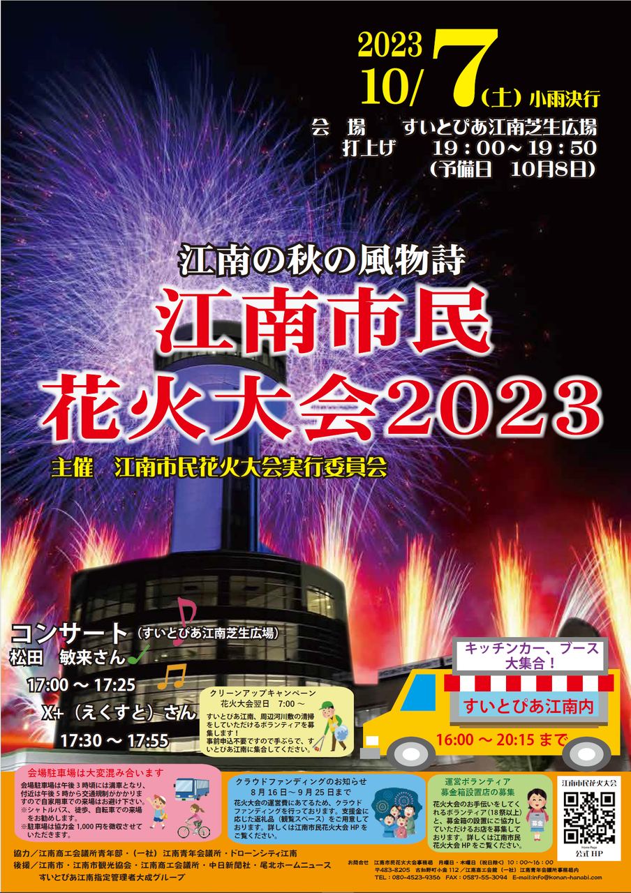10/7(土)に『江南市民花火大会2023』が開催されます。会場はすいとぴあ江南芝生広場。