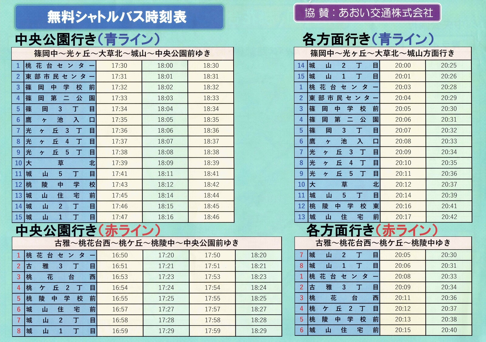当日は桃花台の外側エリアをメインに、シャトルバスが走ります。赤コースと青コースの2種類。