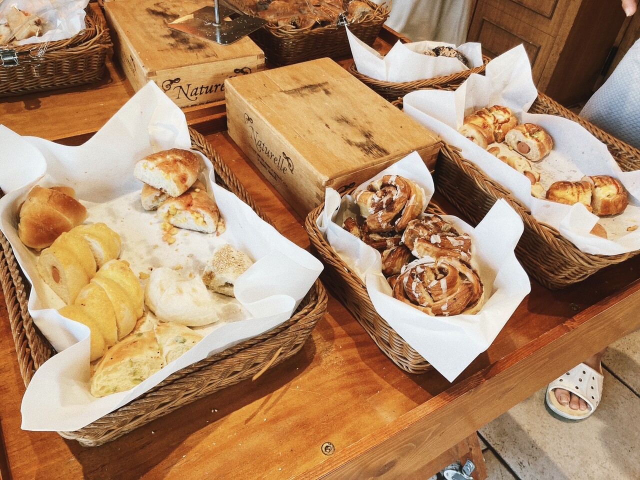 ビュッフェコーナーは山盛りのパン!