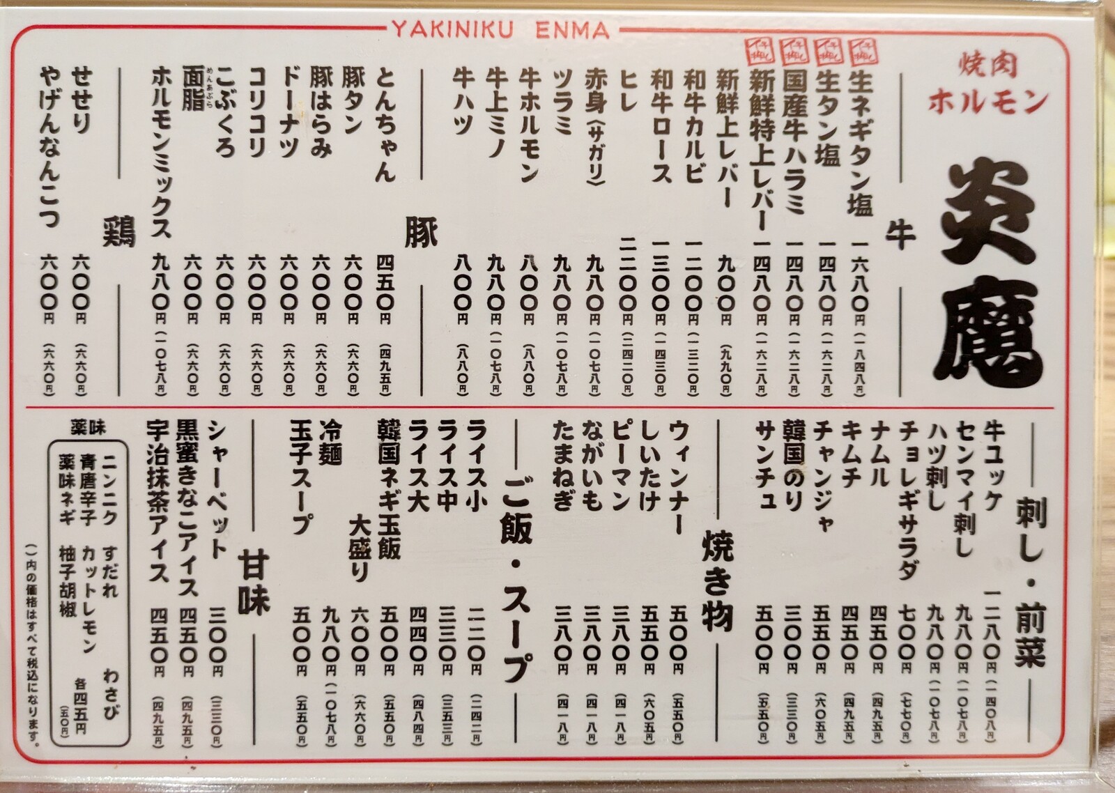 焼肉ホルモン炎魔という店名ですが、ホルモンメインって感じでもないです。オーソドックスな焼肉店。