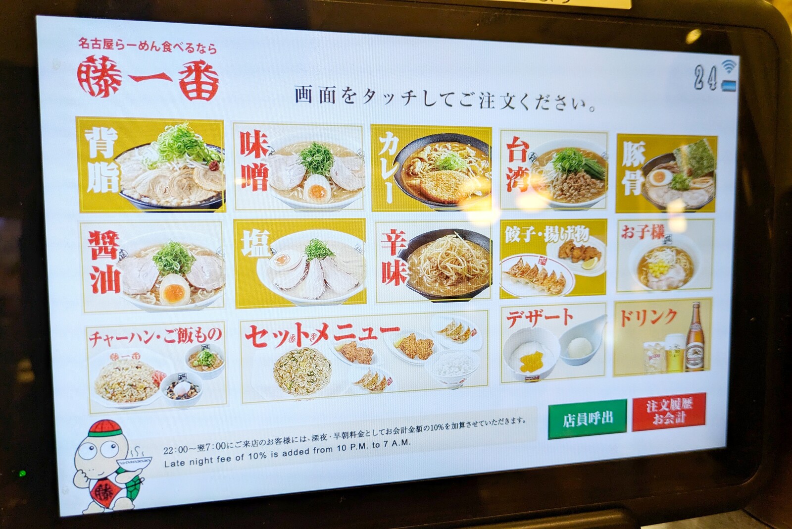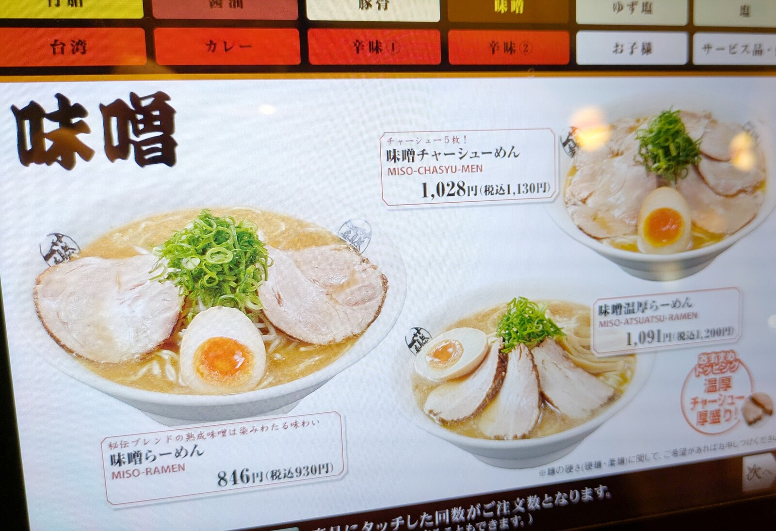 今回は、右上に見える「味噌チャーシューめん」を注文。