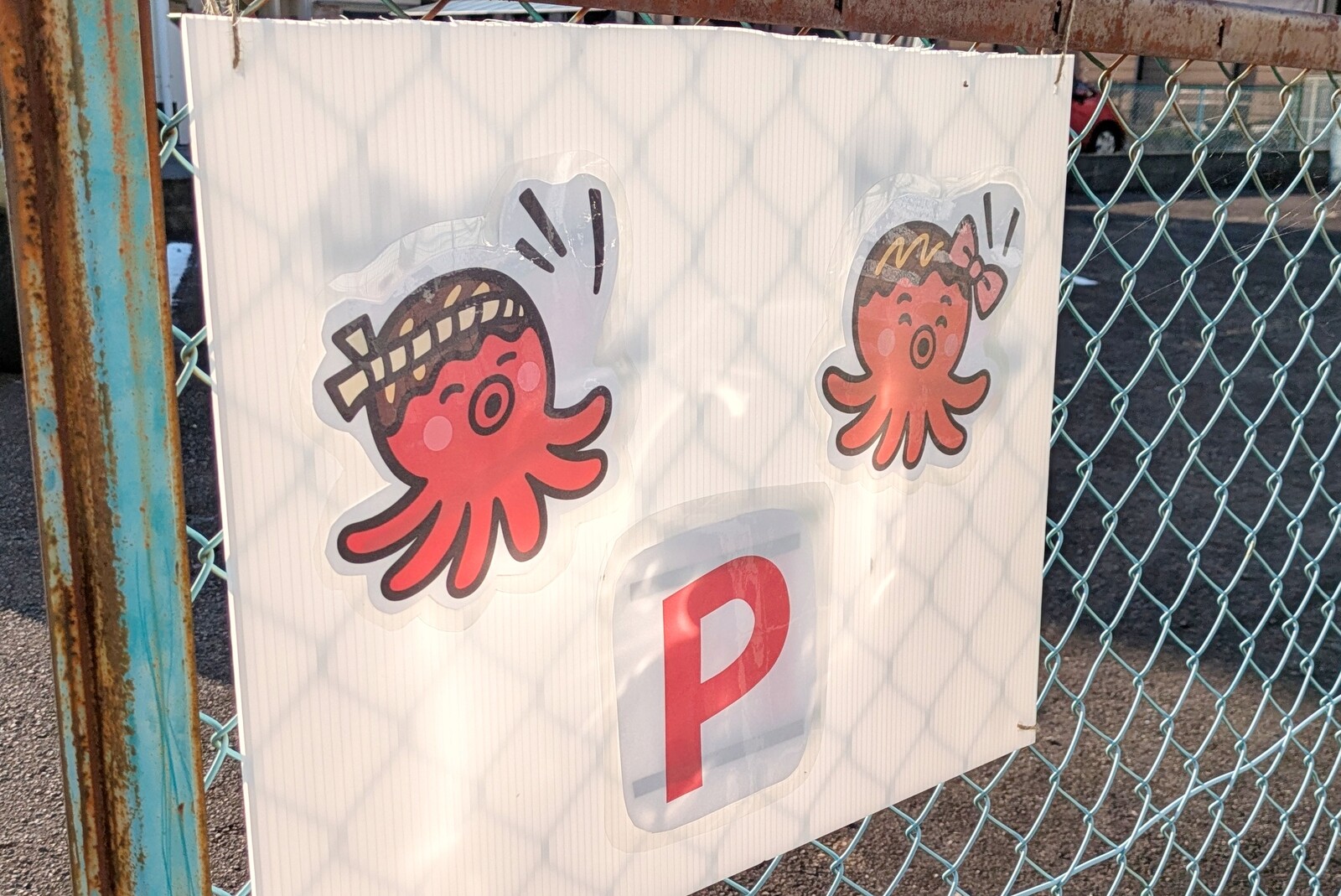 店舗の北西側に4台分ほどの駐車場があります。タコのイラストが目印。