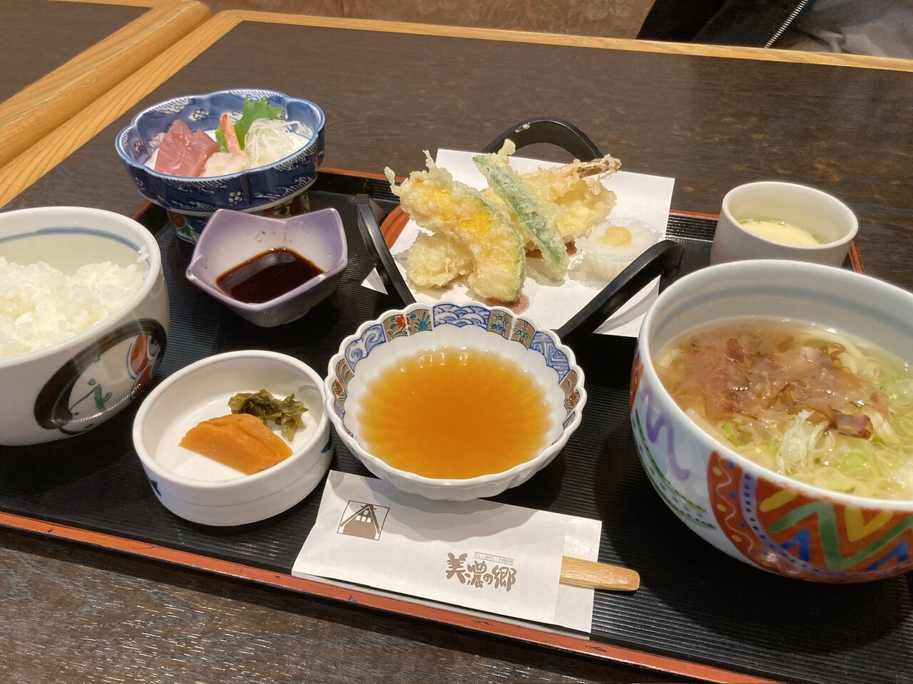 こちらはおすすめランチ。こちらも天ぷらとお刺身が食べられるセット!