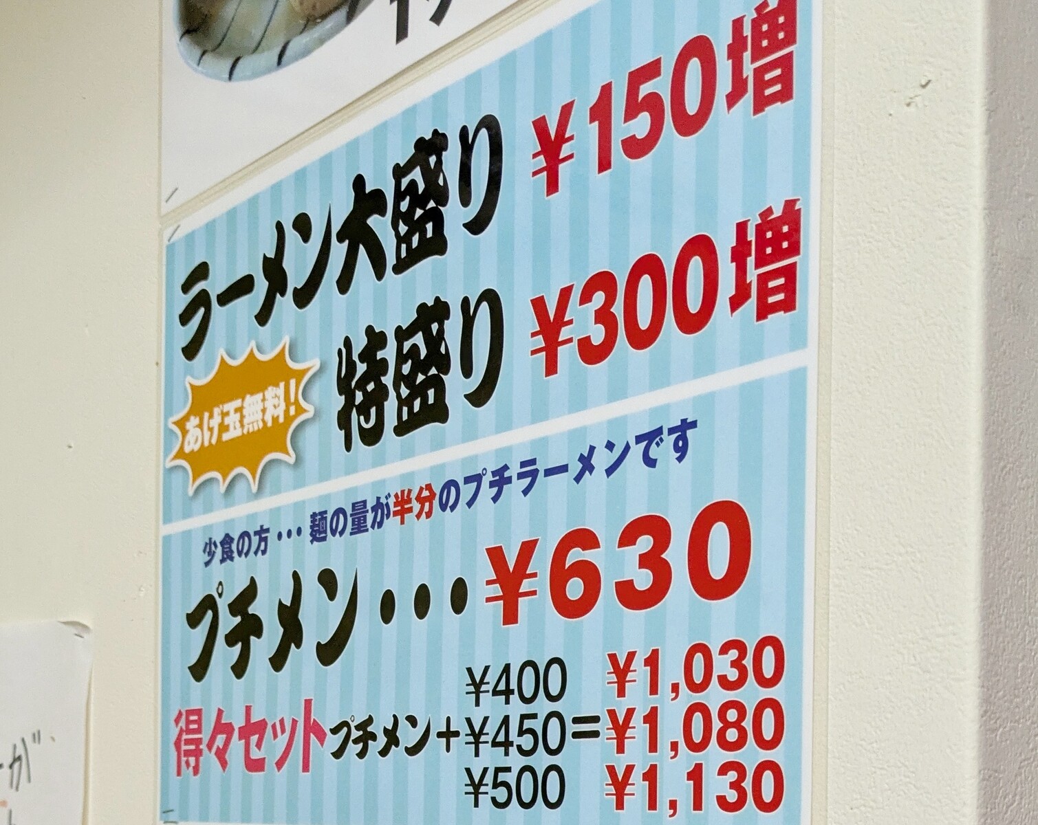 大盛り、特盛りにしたい方はオプションで。逆に麺の量を半分にすることもできます。