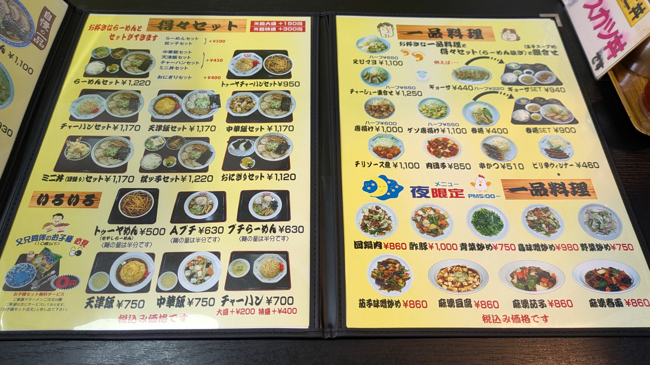 ラーメンを中心に、セットメニューや一品料理など色々あります。