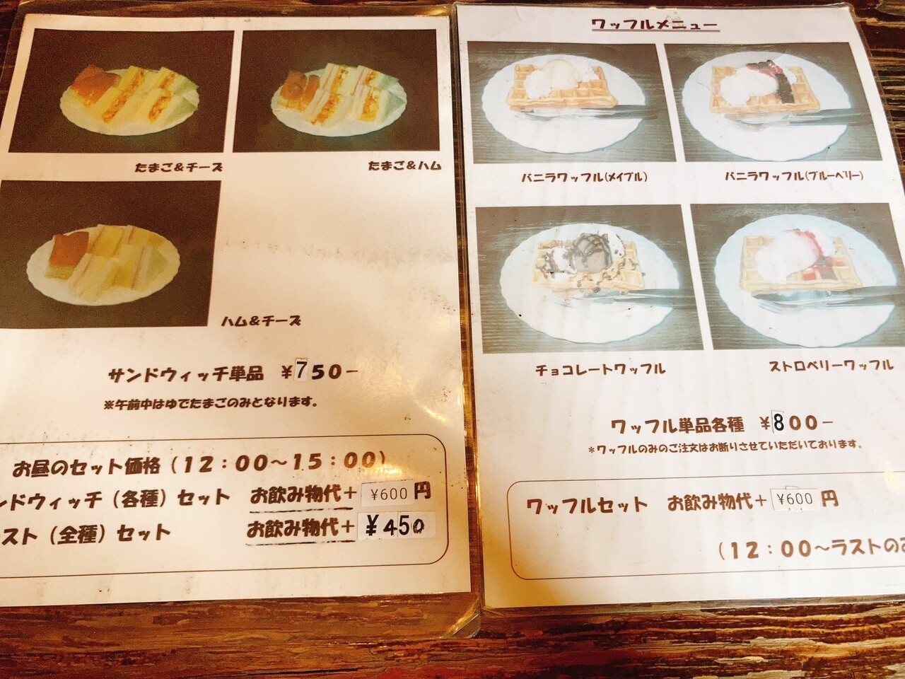 サンドイッチやワッフルは、12:00以降ならセット価格で飲み物代プラス600円でした。