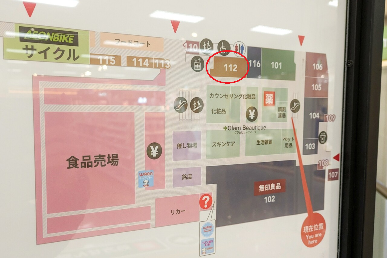 フロアマップで見ると、赤丸で囲った112番の場所になります。