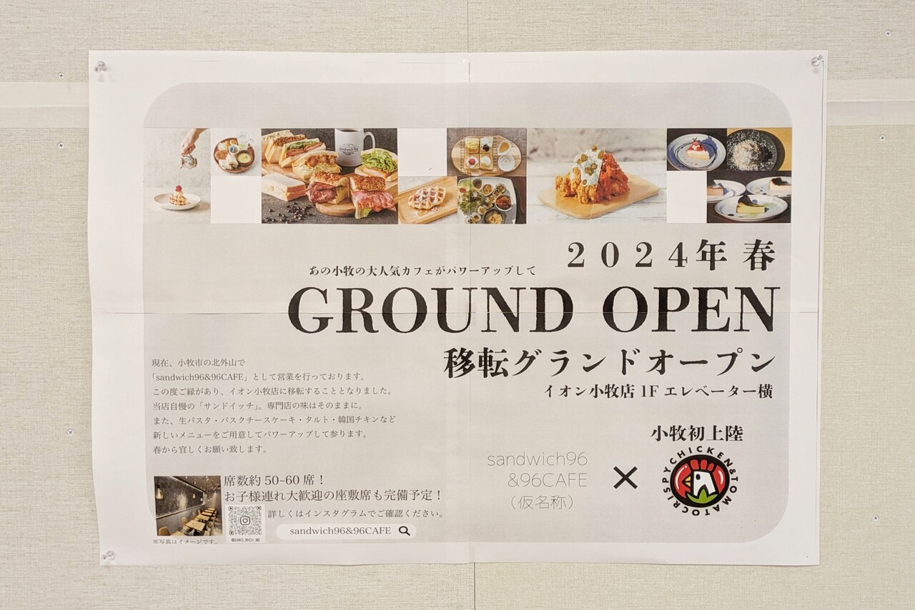 イオン小牧店で新たなお店のオープン予告が出ています。