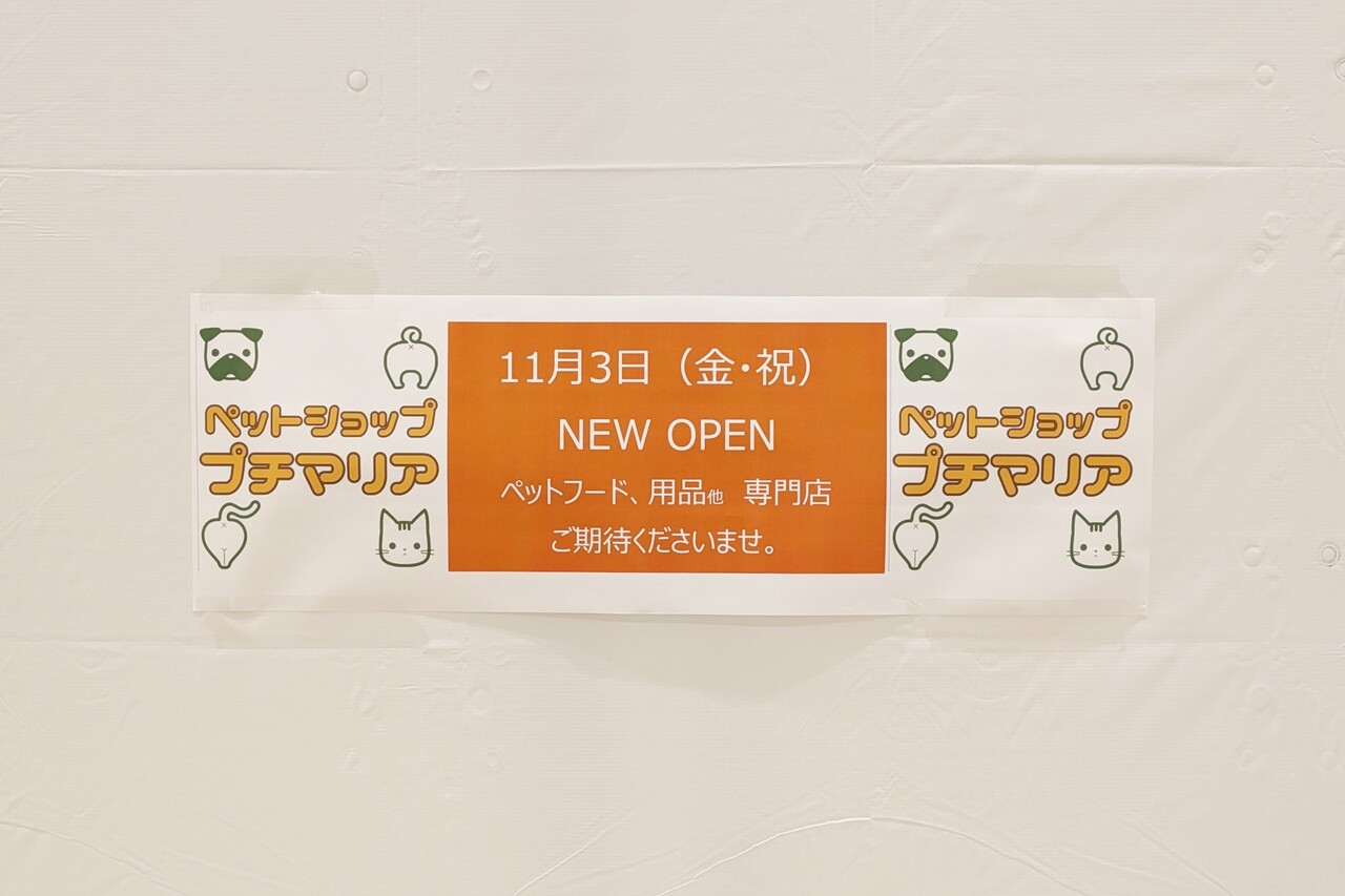 ペットショップのプチマリアができます。11月3日オープン予定。