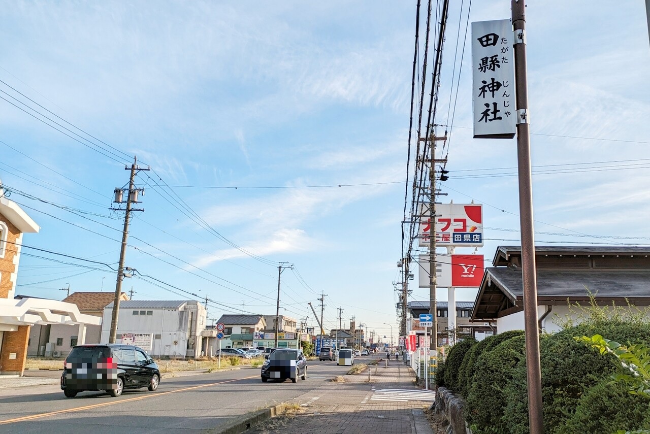 場所はここ。ナフコ田県店と田県神社の向かい側になります。