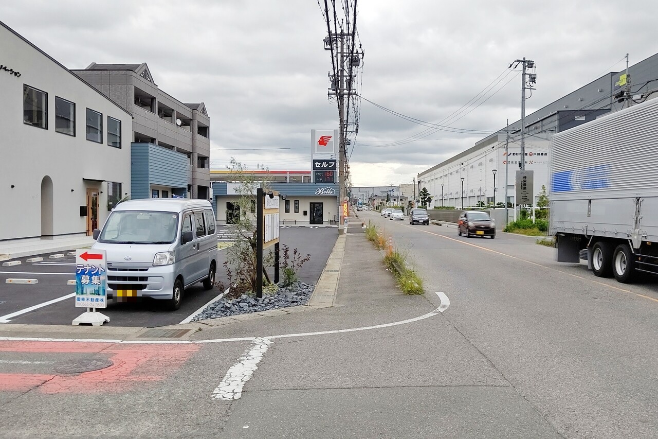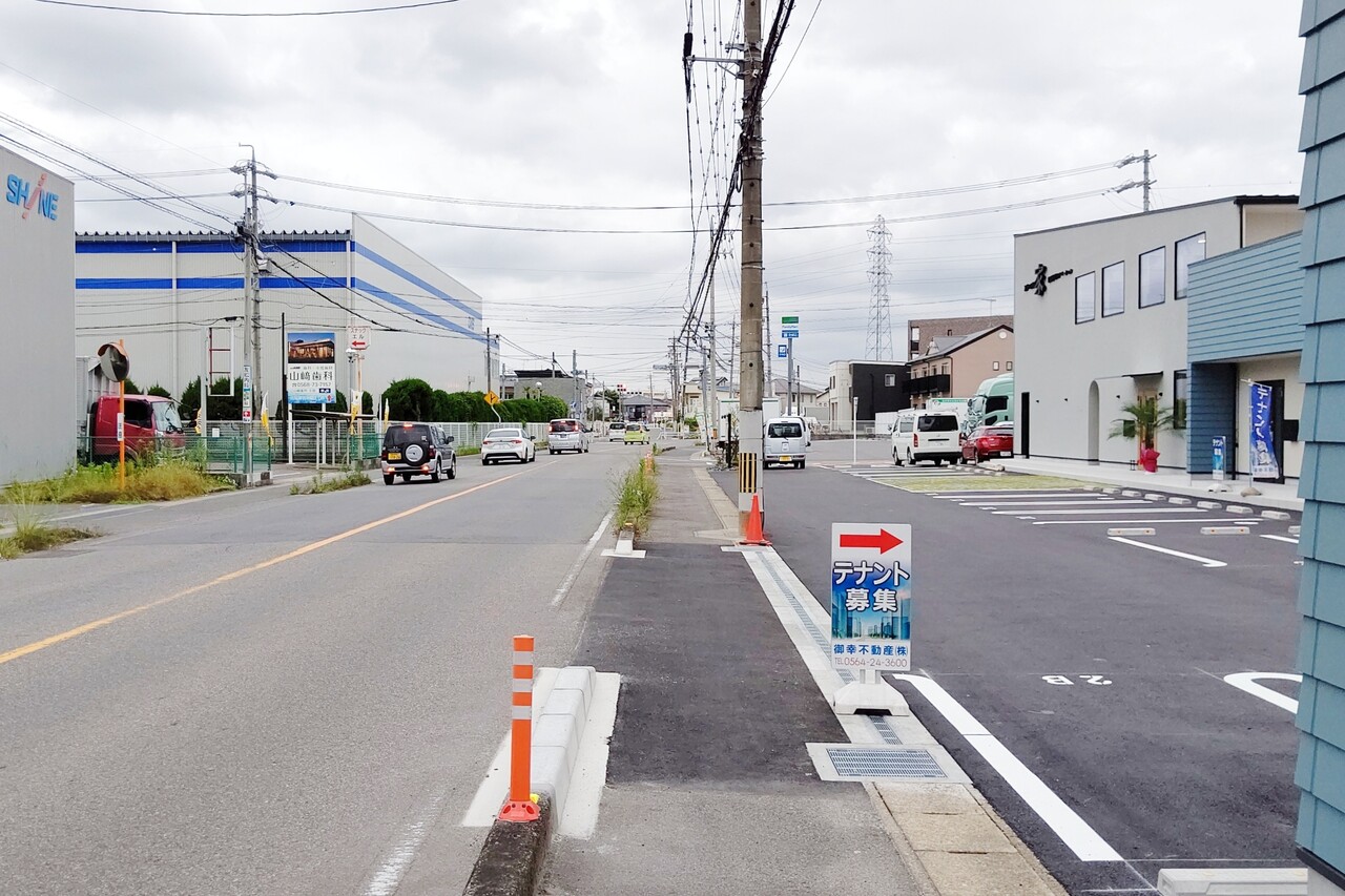 反対向き。真っ直ぐ行くと味岡、岩崎方面ですね。隣にはファミリーマート小牧文津店。