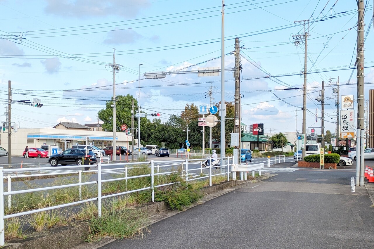 場所はちょうど外堀一丁目西交差点のところ。付近にはローソンやステーキのあさくまが見えます。