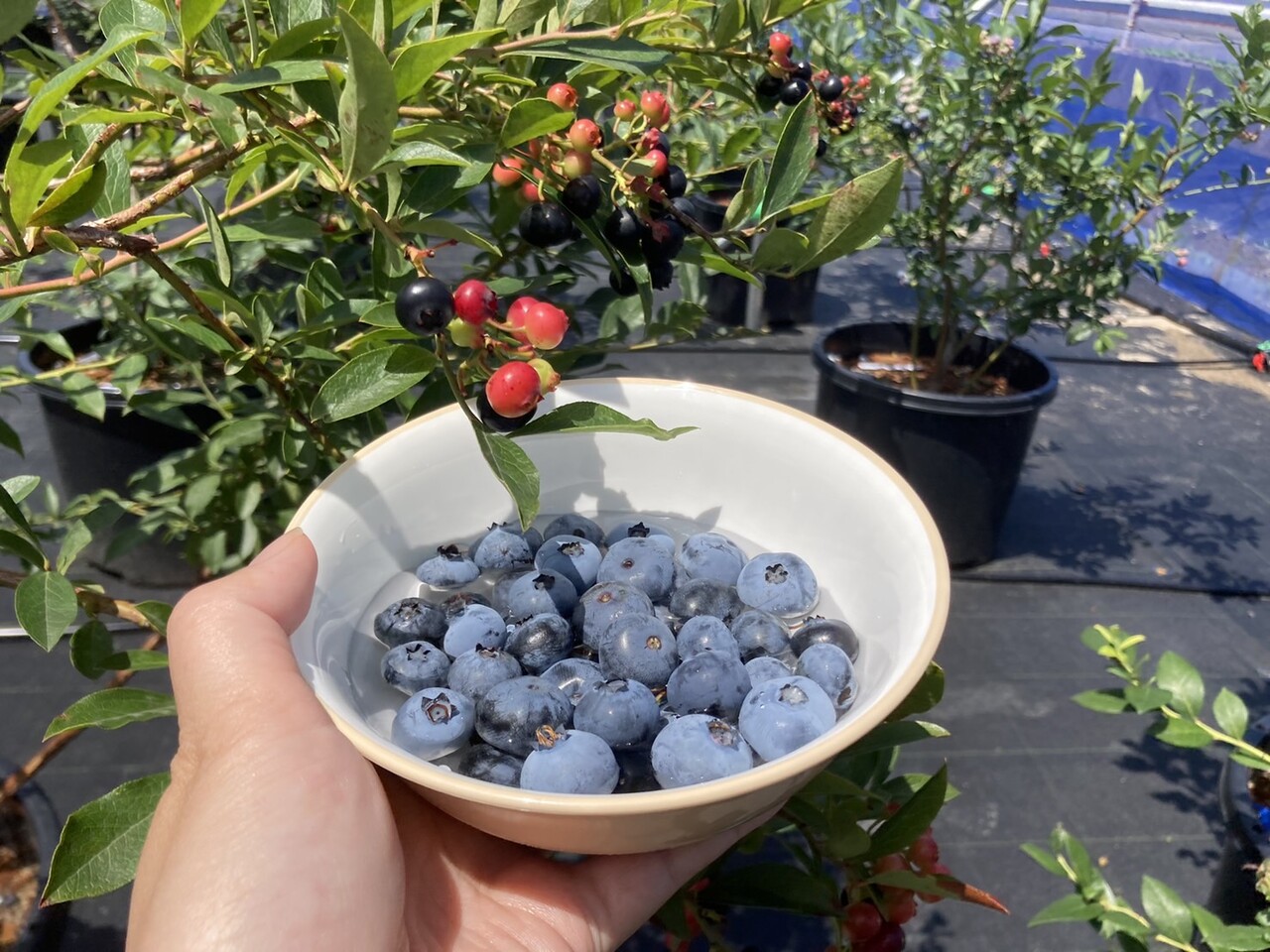 たくさんのブルーベリー!一気に収穫して冷えたものから食べていくと良さそうです。