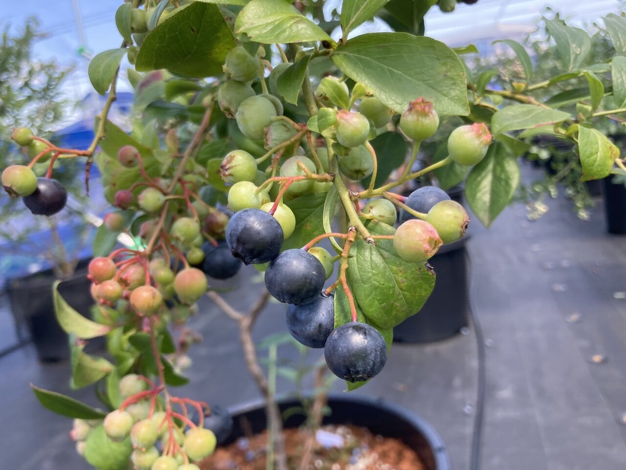 軸が赤くなっているブルーベリーが食べごろだそうです。
