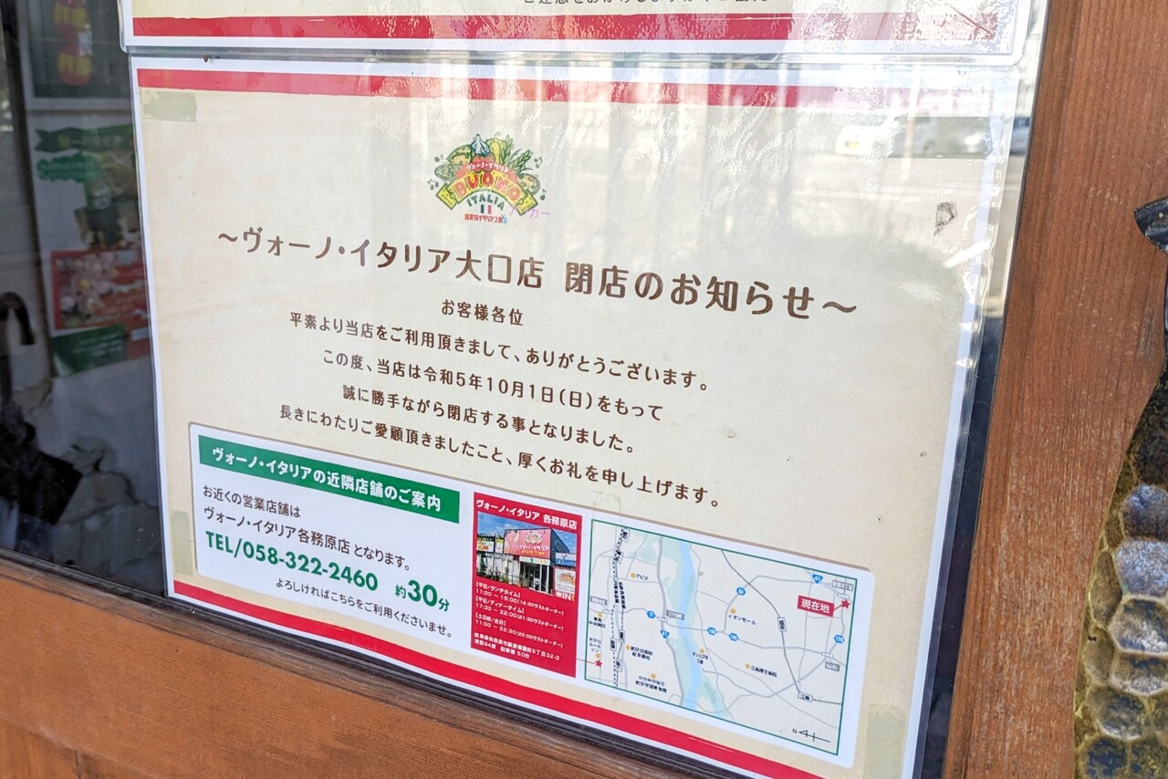 「ヴォーノ・イタリア 大口店」が閉店していました。