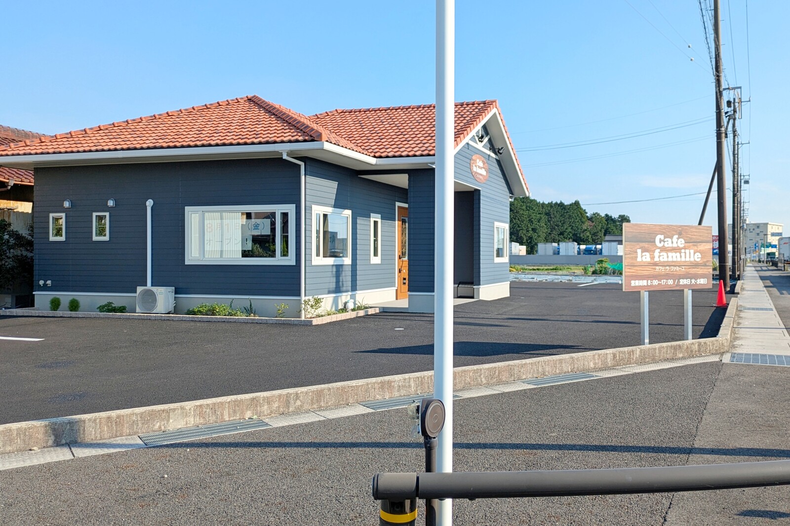 以前は駐車場のような土地だった場所に完成したカフェ ラ ファミーユ(@_cafe_la_famille)。夫婦2人で営む小さなカフェとのこと。