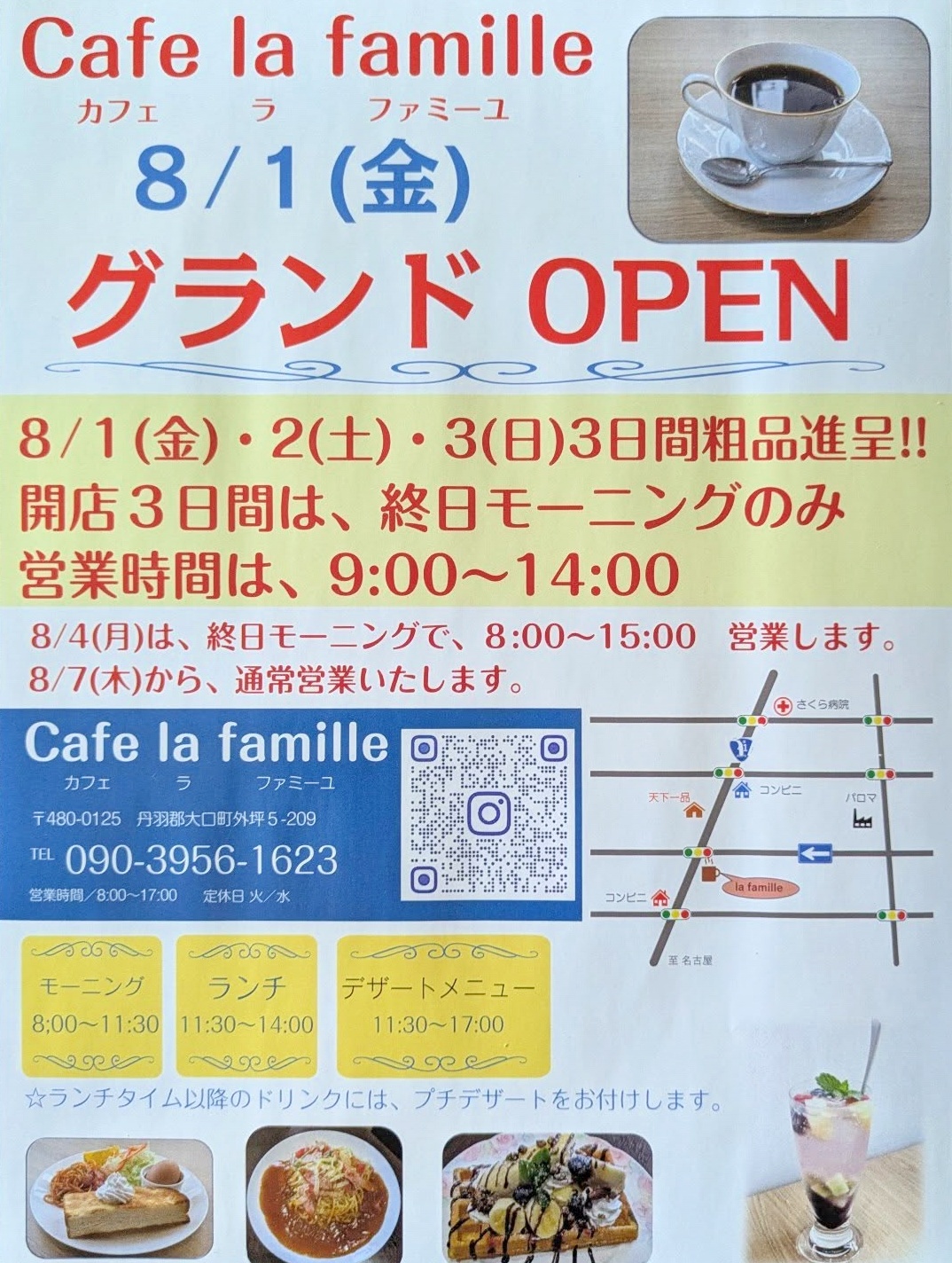 大口町外坪5丁目に「Cafe la famille(カフェ ラ ファミーユ)」がオープンします。
