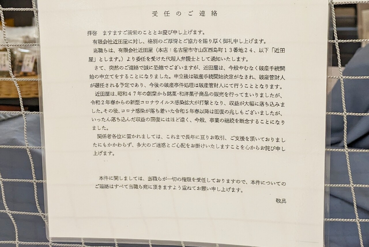 閉店理由は、運営会社である近田屋の破産手続開始。