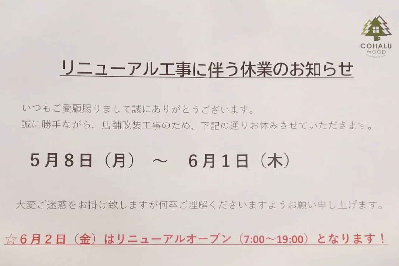 入口にあった貼り紙。5月8日から6月1日まで改装工事中。