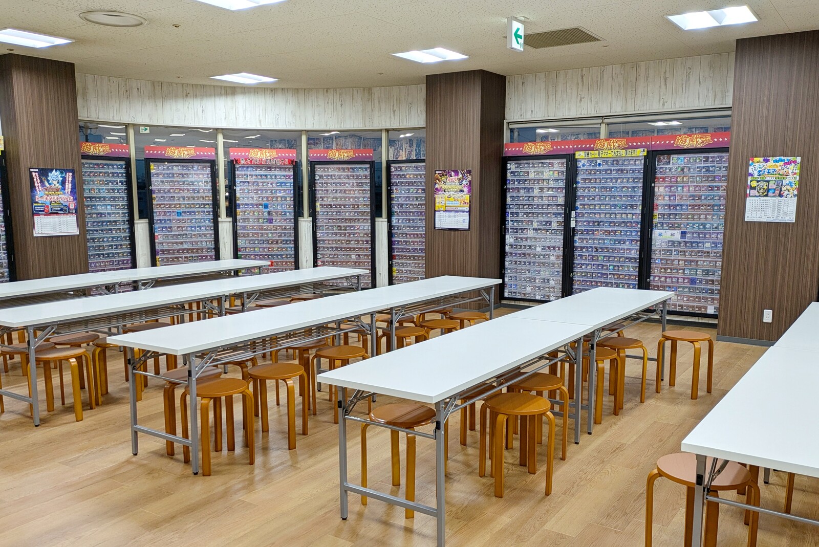 文具コーナーの奥にはカードゲーム用のスペースが。60席。