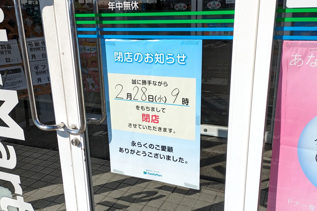 「ファミリーマート 犬山楽田大橋店」が閉店するようです。