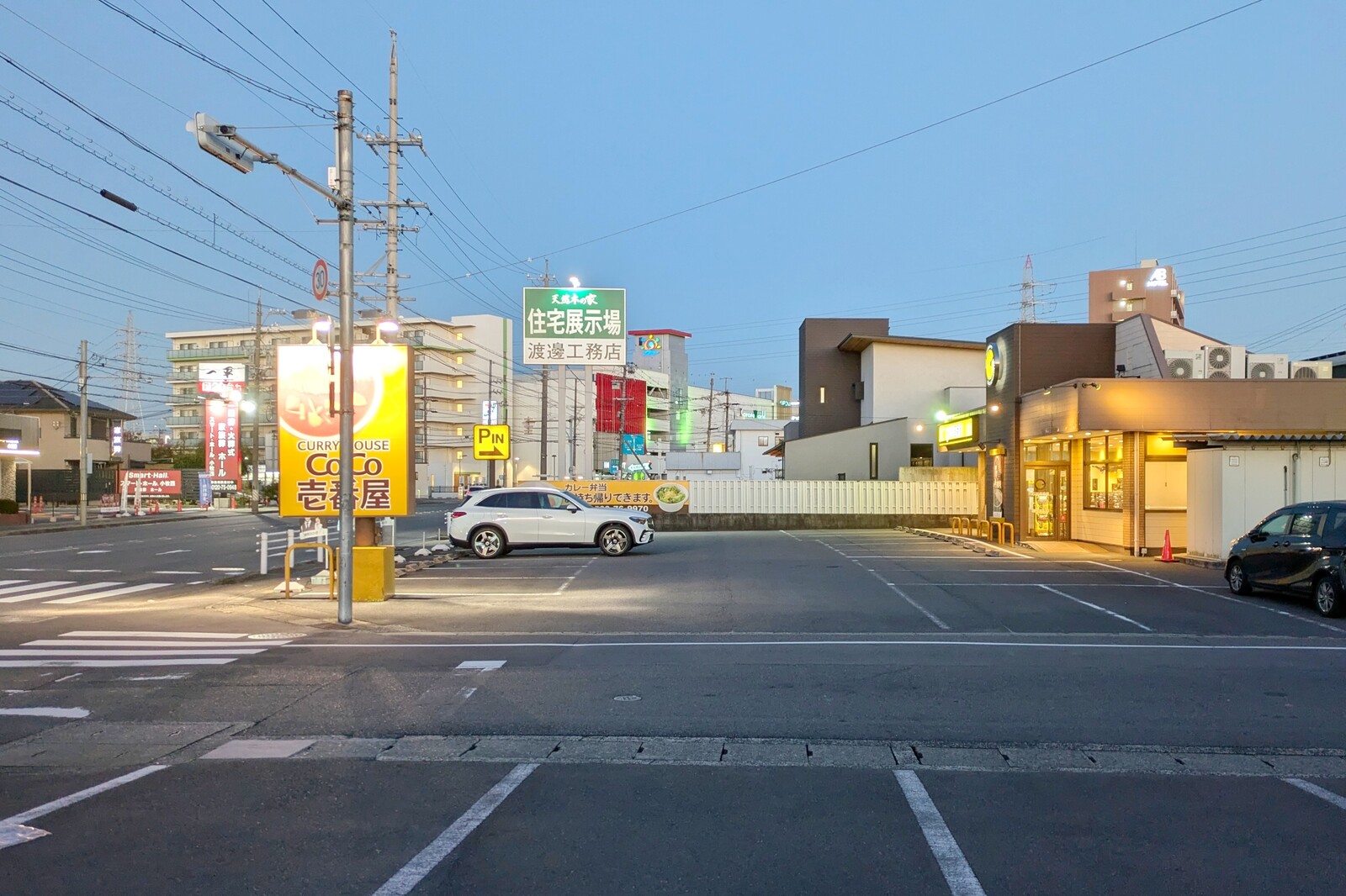 道路を挟んで、CoCo壱番屋の隣。奥に見えるのは小牧コロナワールドです。