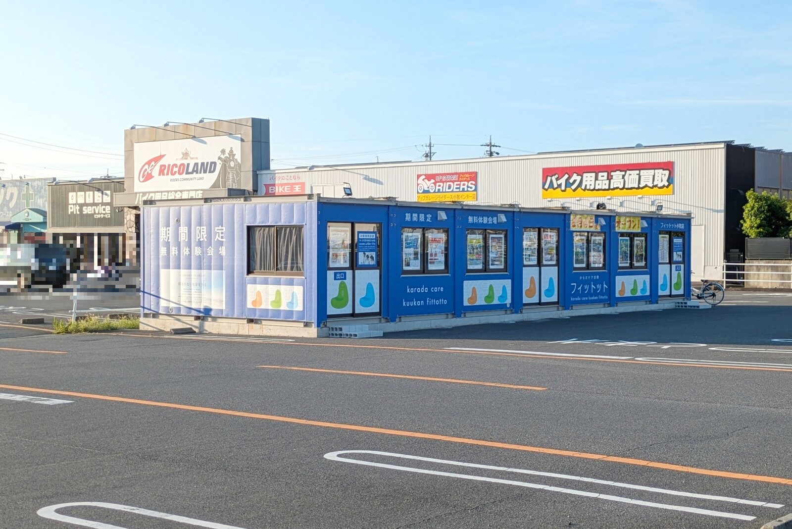 少し前にコンテナが並んでおり、何かできるのかな?と思いましたが、気づけば青い外観に変化。からだケア空間のフィットットに。