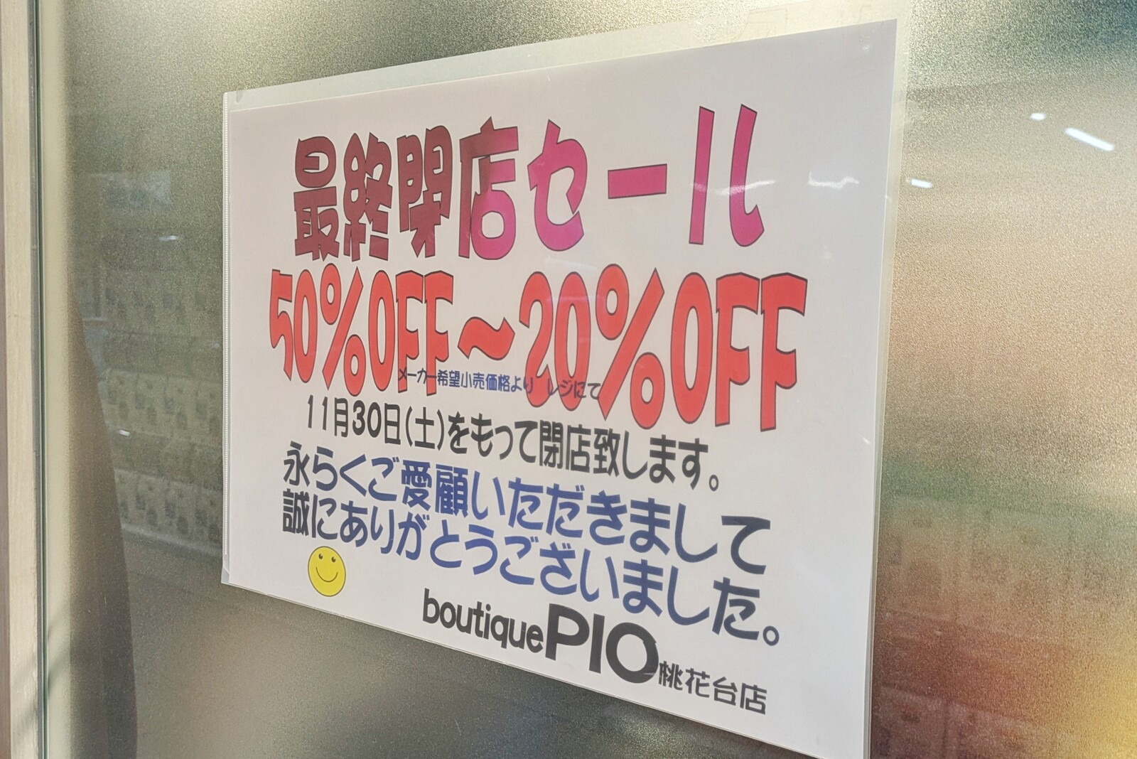 20%~50%OFFとなる最終閉店セールを開催中。