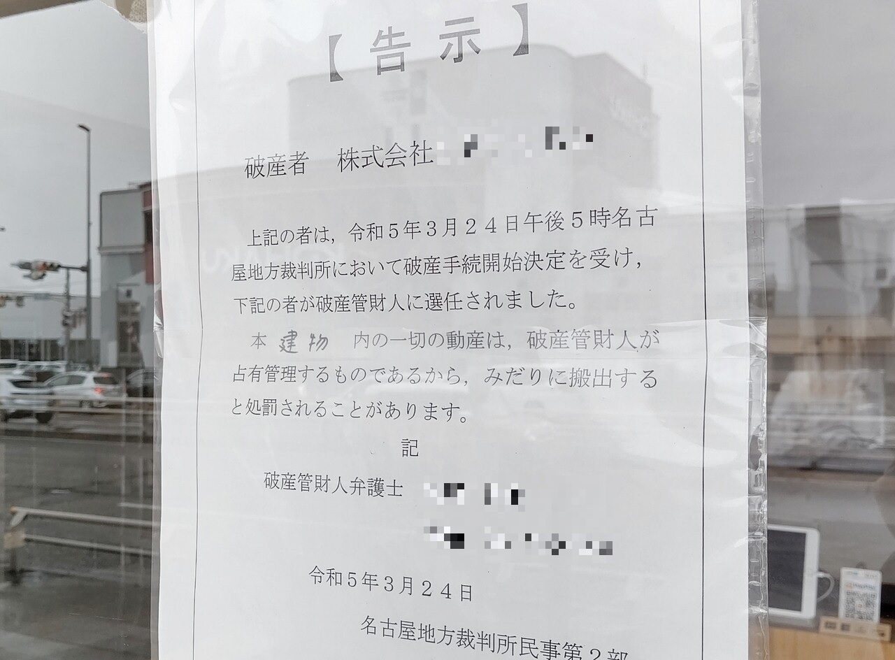 店舗が営業していない様子だったので、近づいてみると、、、こんな貼り紙が。