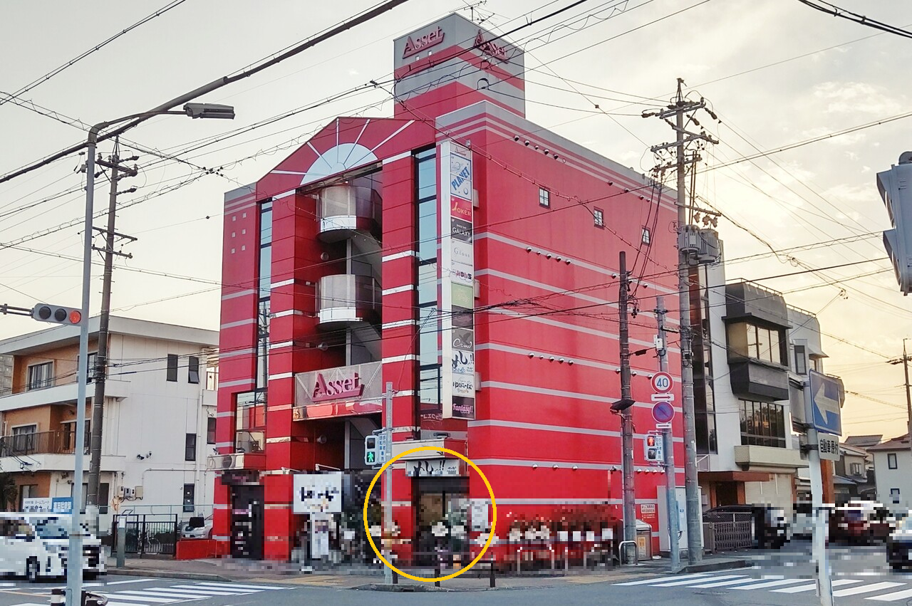 お店がオープンする場所はこちらのアセット小牧ビルの1階。黄色の丸で囲った所です。