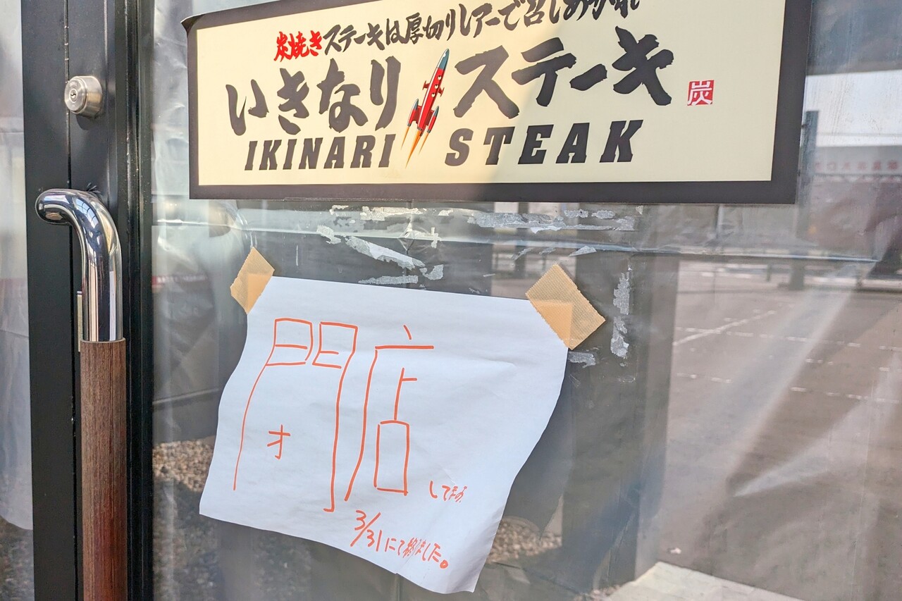 大口町新宮の「いきなりステーキ 愛知大口店」が閉店しています。