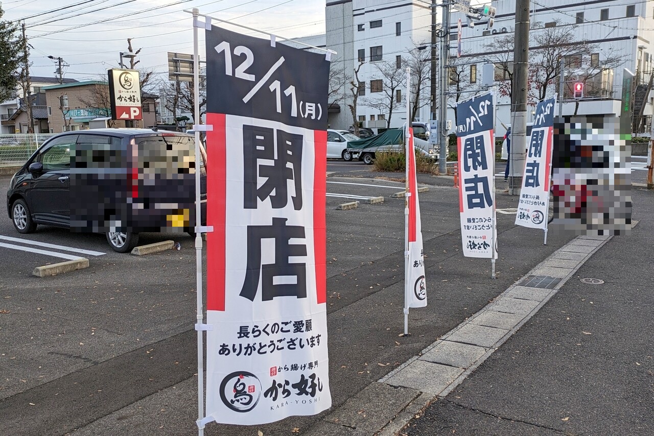 春日井市東野町の「から好し 春日井落合公園店」が12/11(月)をもって閉店するようです。