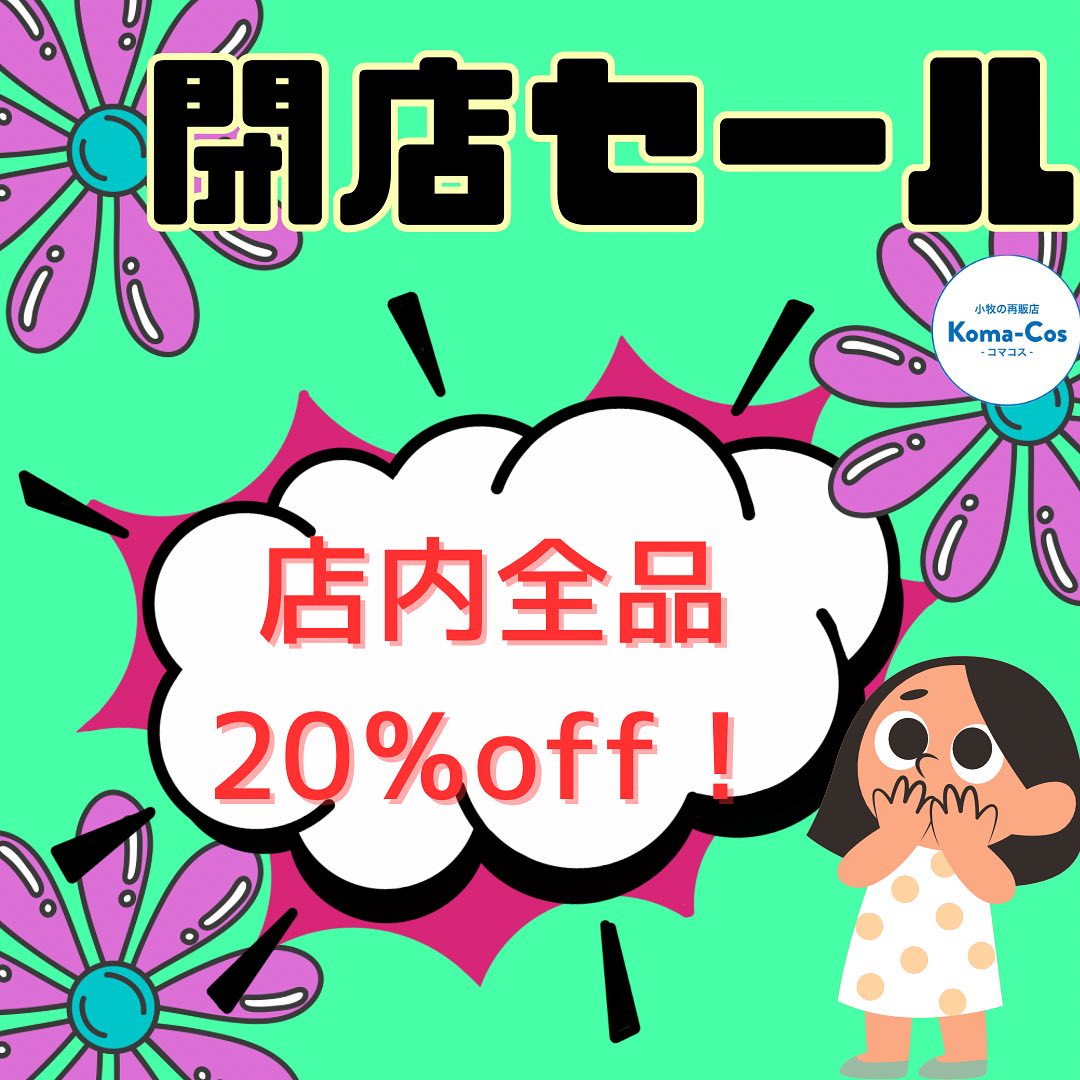 特価商品は除外されますが、店内の商品が20%OFFに。※新規の仕入れは無し