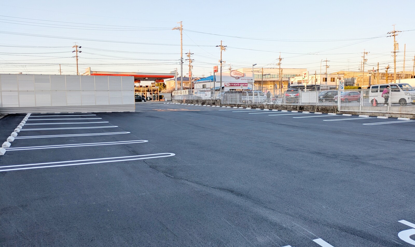 道路を挟んだ斜め向かい側にも駐車場があります。